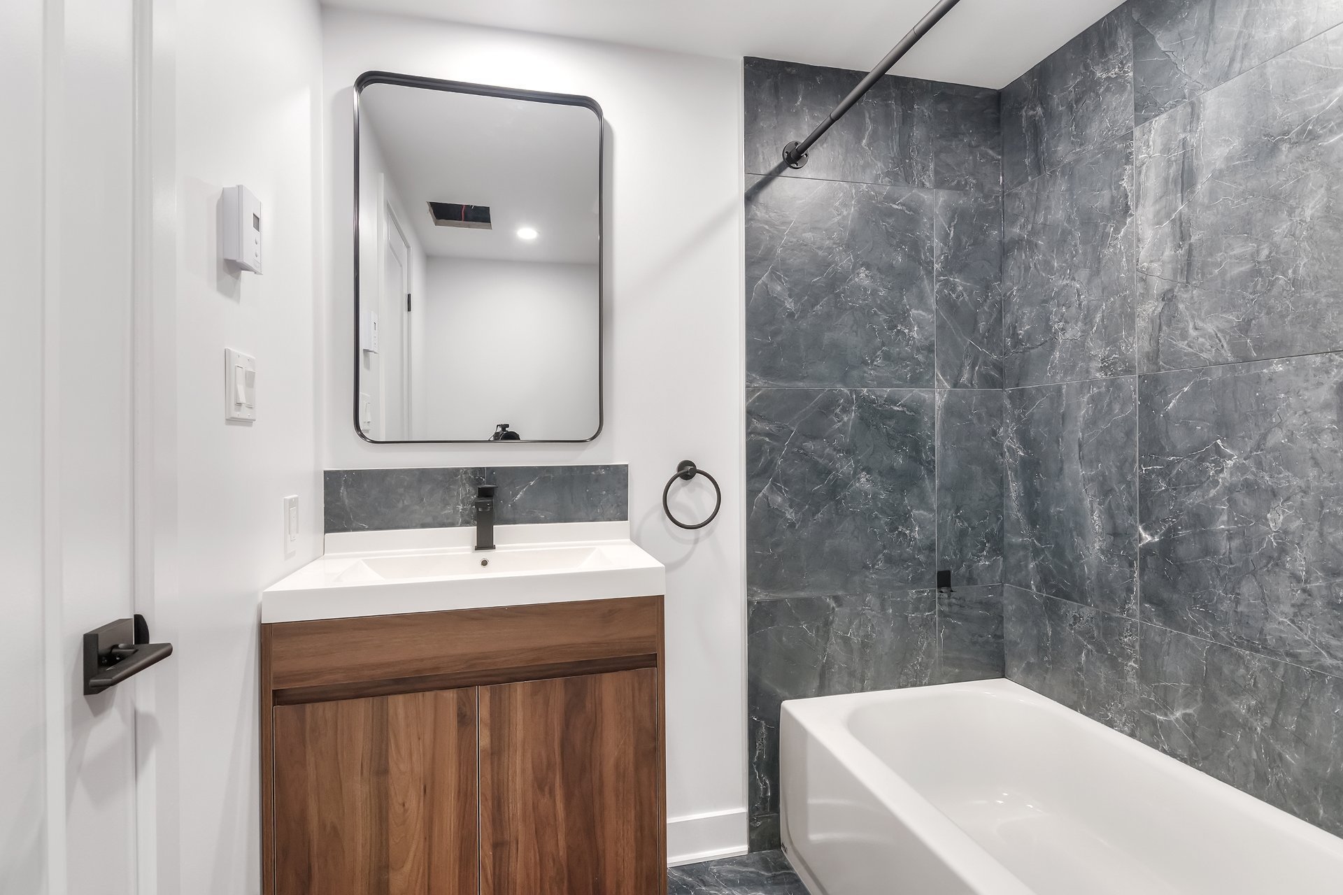 This newly renovated 3-bedroom unit in a quiet, family-friendly neighbourhood in Laval offers modern style and comfort. Featuring an open-concept living, a sleek kitchen, and stylish bathrooms, it's designed for contemporary living. The spacious bedrooms provide plenty of natural light and storage space. The unit also includes a powder room for added convenience. Located near essential services, parks, and public transportation, it combines tranquility with easy access to everything you need, making it an ideal choice for those seeking a comfortable and convenient home.