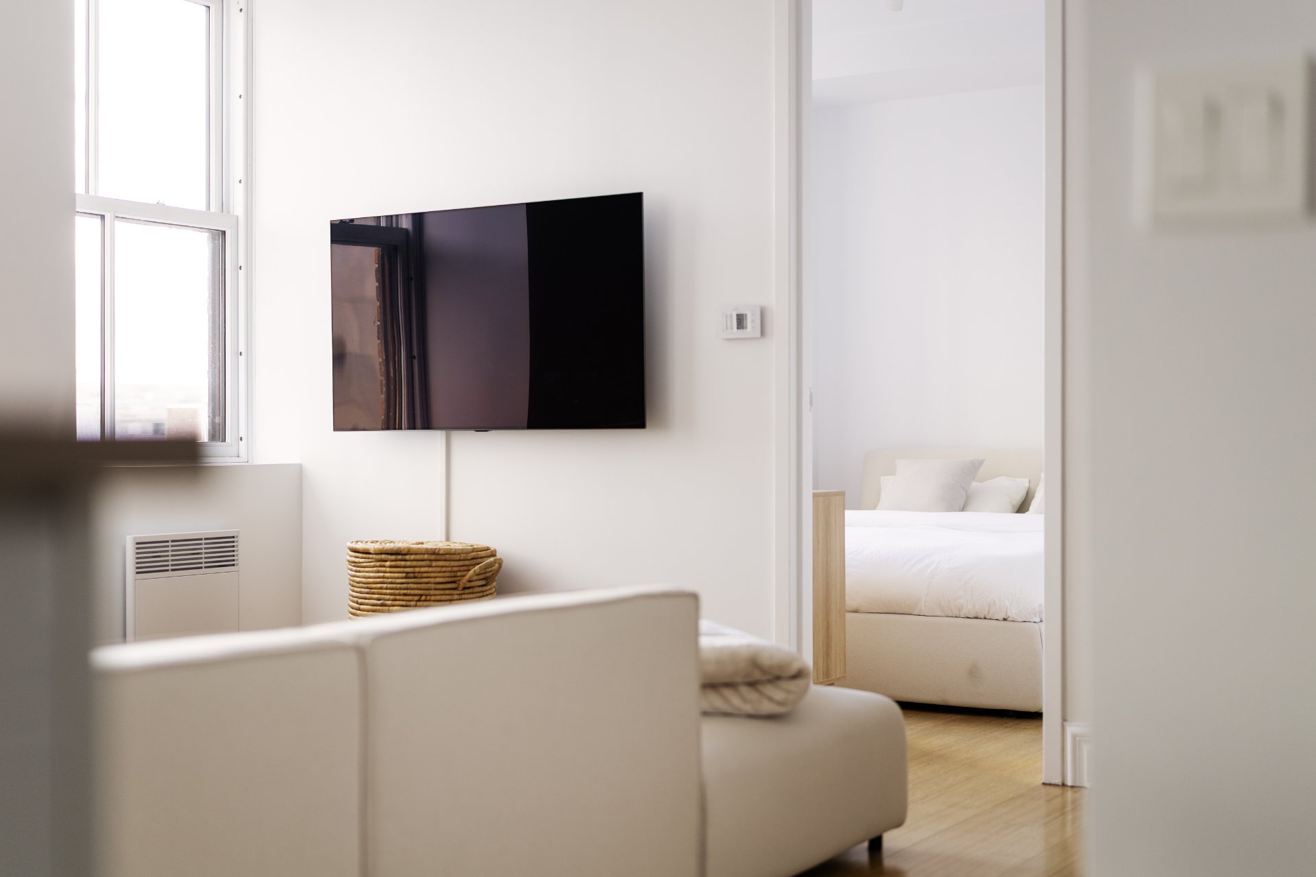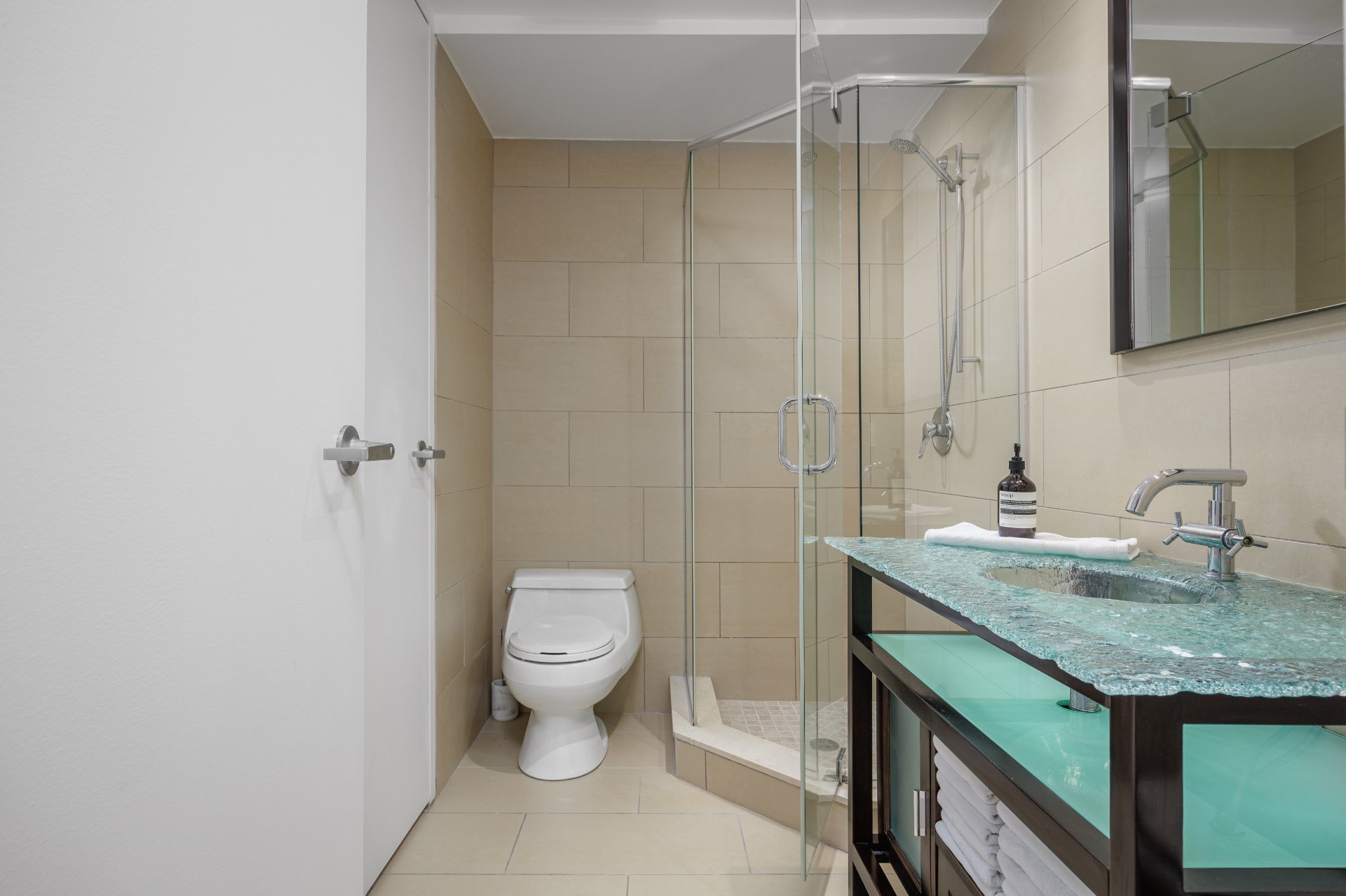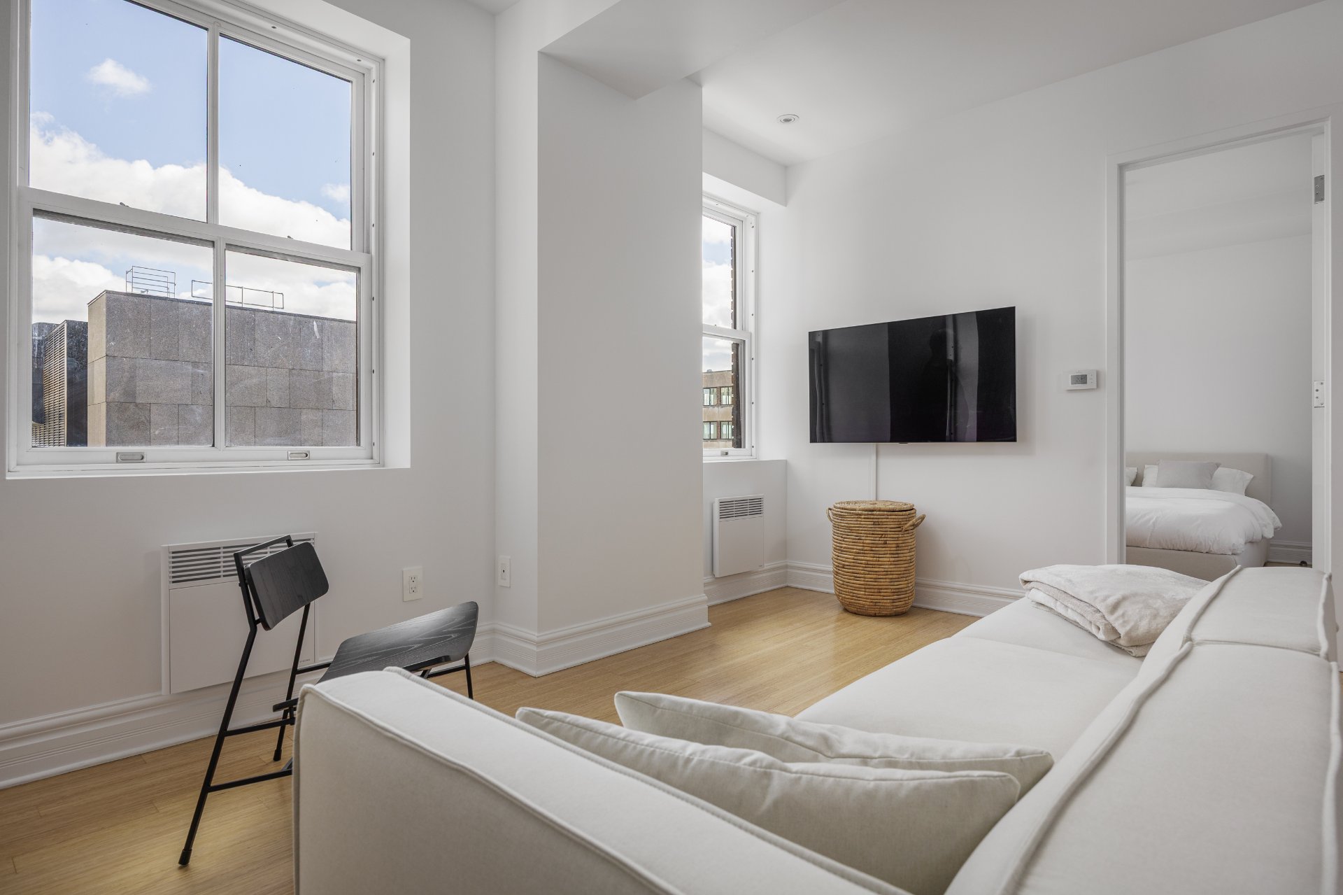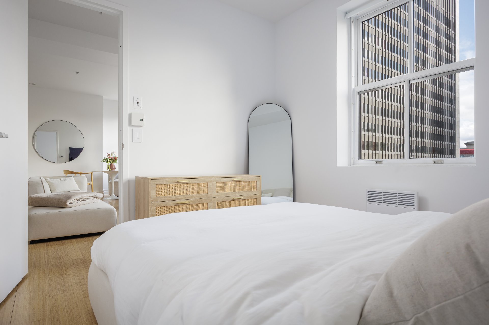 Bienvenue au Thémis suite 605 - walk-score de 100! Au coeur du quartier judiciaire, à deux pas du Palais de Justice, de la Cour d'appel, du nouveau Palais fédéral, métro Place d'Armes, cet immeuble patrimonial de 1928 marie l'élégance histoire et confort moderne. Lumineux condo divise de 521 pc, abondance de lumière, cuisine en quartz, chambre queen avec stores motorisés, planchers bamboo remis à neuf, entrée intelligente et remise. Terrasse sur le toit, gym dans l'ancienne voûte. Idéal pour avocats, professionnels du CHUM, premier achat, pied-à terre ou investissement. Clé en main, facile à visiter, occupation rapide.