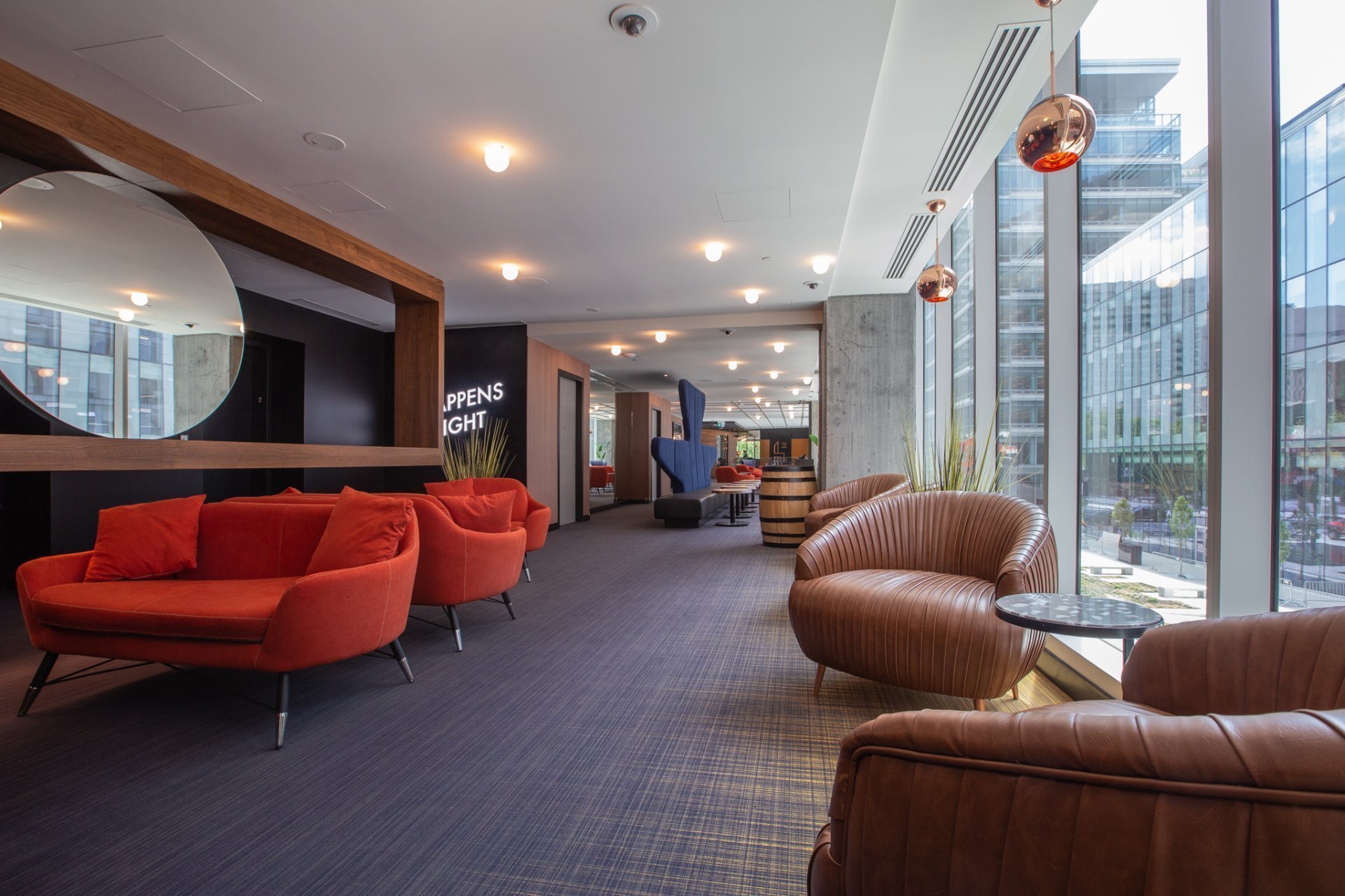 intérieurs/extérieurs, salles de coworking et de conférence.