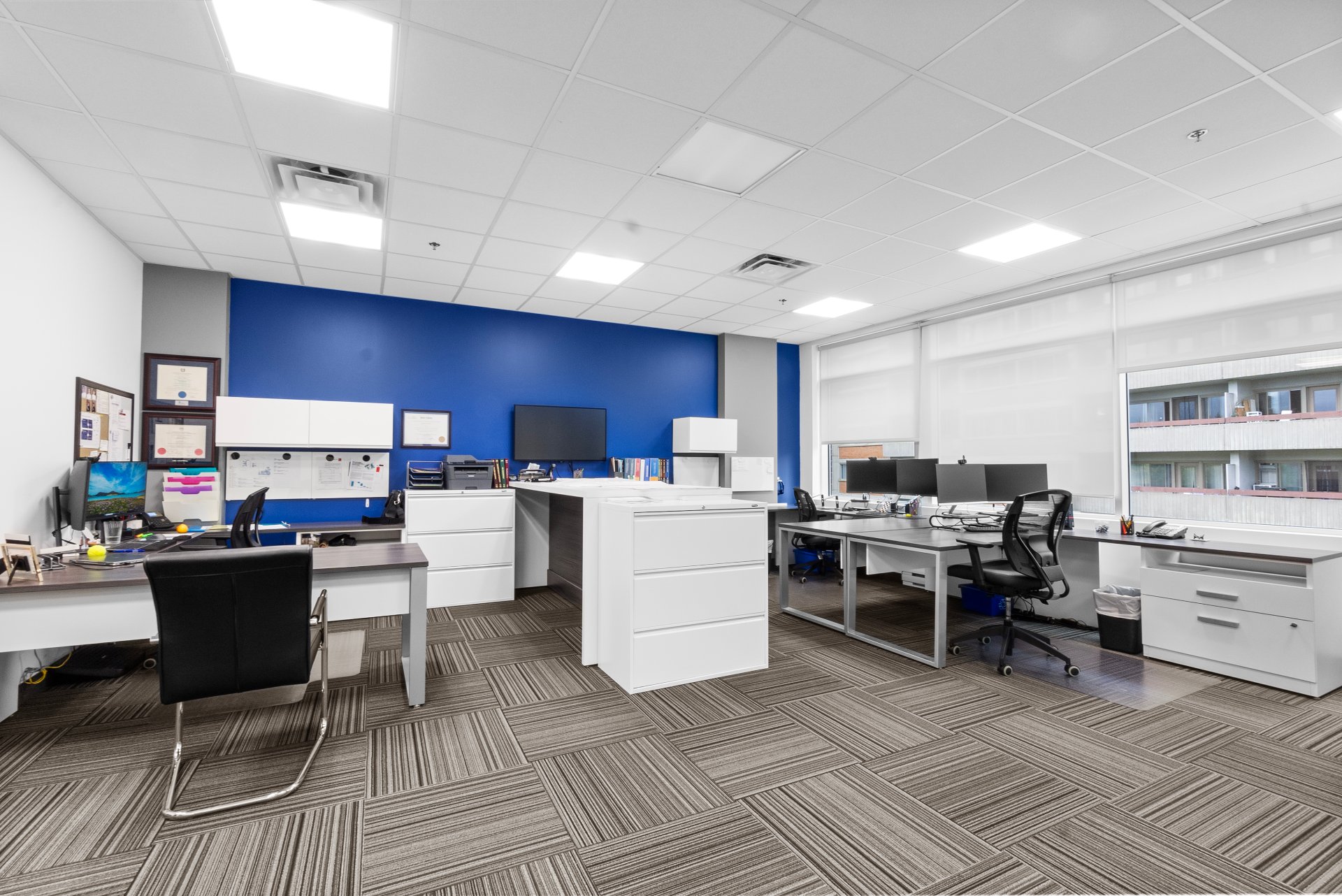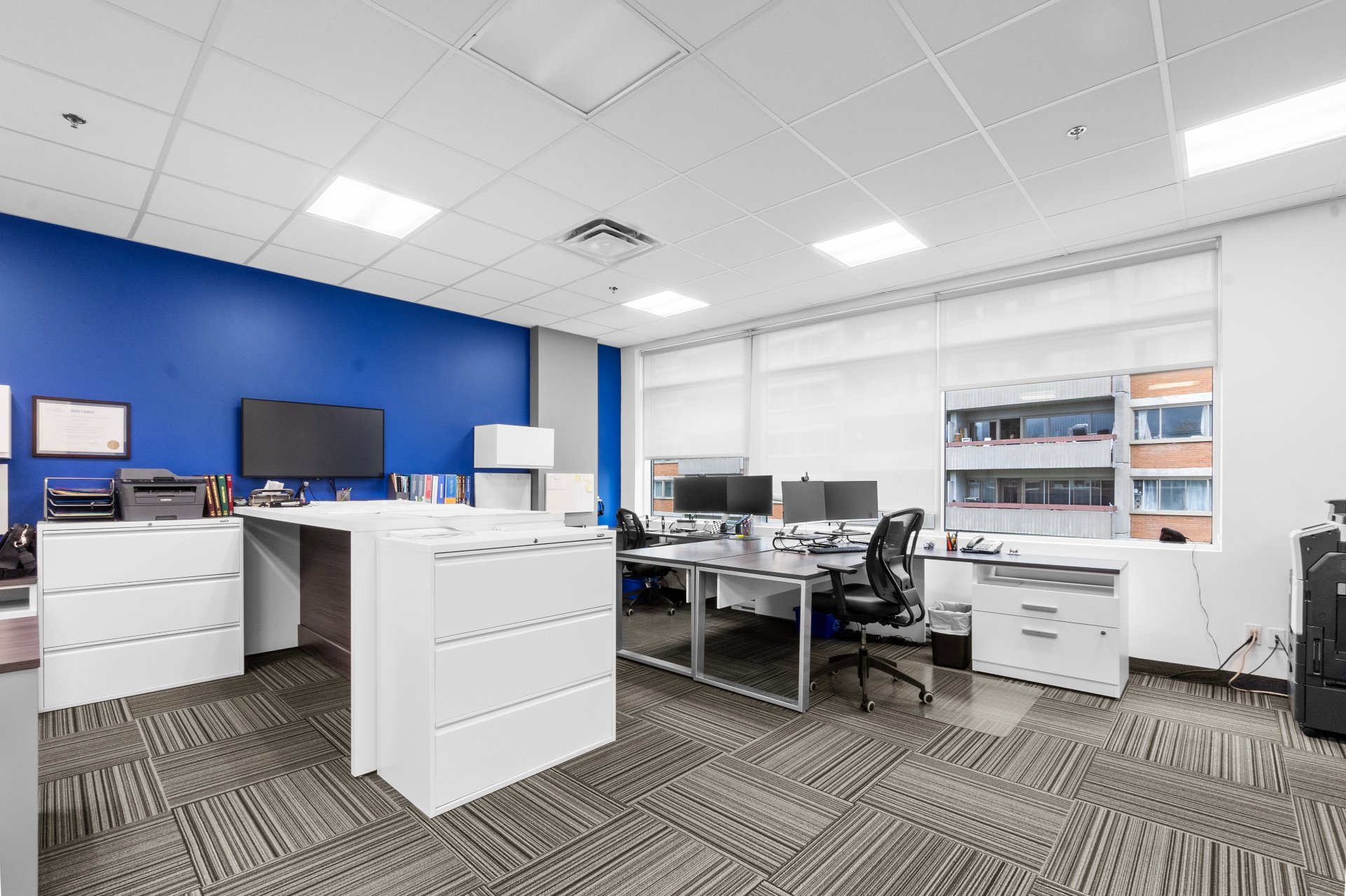 Bureau de 1 000 pi² idéalement situé sur le boulevard de la Côte-Vertu, au coeur de Saint-Laurent. Offre un espace lumineux avec cuisine, salle de conférence et aire de travail ouverte. Excellente accessibilité en voiture et en transport en commun, à quelques minutes du métro Côte-Vertu, de l'autoroute 15 et de l'aéroport Montréal-Trudeau. Entouré de restaurants, cafés et services essentiels, cet emplacement offre commodité et connectivité pour vos employés et clients! 2 places de stationnement intérieur incluses.
