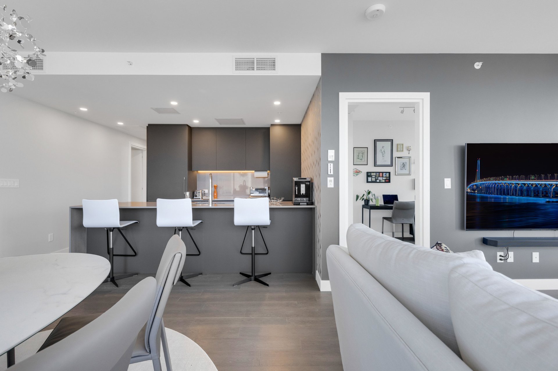 Bienvenue aux Condos Quinzecent au 1500 boul. René-Lévesque O., tour de luxe de 36 étages complétée en 2023. Cette unité de coin au 29e avec 3 chambres, 2 salles de bain et vues nord-ouest sur la ville et le mont Royal. Fenêtres pleine hauteur, cuisine moderne, chambre principale avec salle de bain attenante et balcon Juliette. Balcon de 160 pi² pour admirer le coucher du soleil. Commodités : portier 24/7, salle de colis, rangement à vélos, piscine d'eau salée, saunas, gym, terrasse de 6 000 pi² avec BBQ et cinéma, et salon avec foyer. l'épicerie Maxi au rez-de-chaussé du complex. À proximité des universités, transports, commerces et restos.