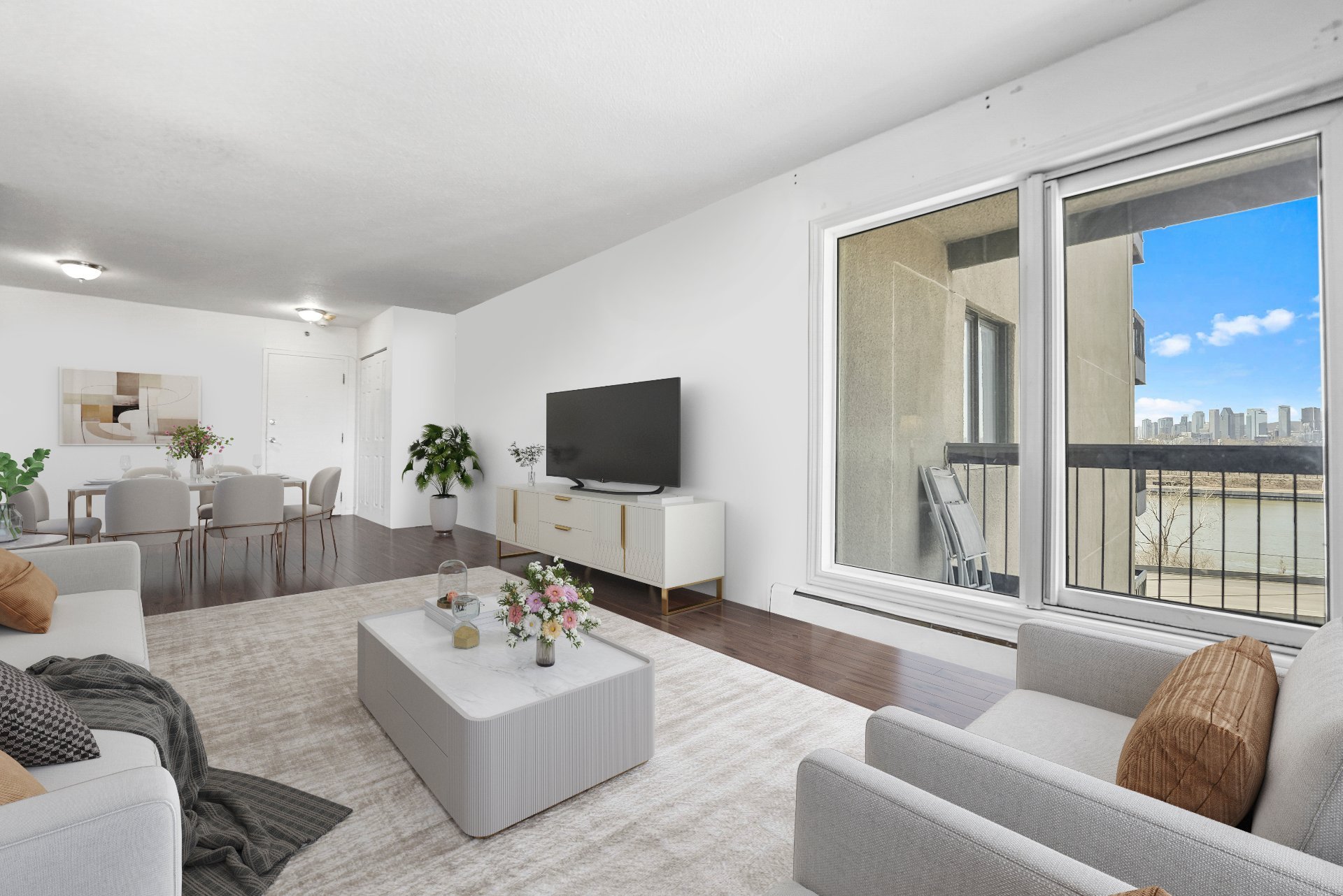 Unité 1 chambre a couché 6e étage avec vue sur l'eau, le centre-ville, La Ronde et les feux d'artifice d'été. Aire ouverte avec stationnement extérieur, espace de rangement intérieur et rangement pour vélos. Eau chaude, chauffage et électricité INCLUS dans les frais de condo. À distance de marche de la gare, des parcs, du transport en commun et des commerces. Parfait pour un premier achat ou un investissement.