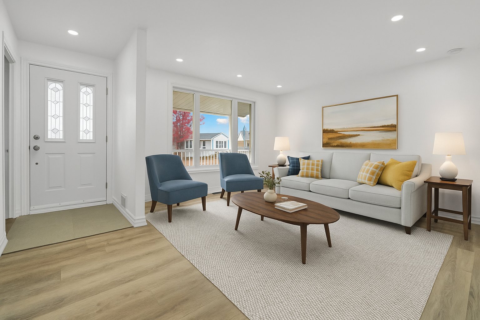 | Salon | 12 x 11.5 P | Rez-de-chaussée | Plancher flottant |