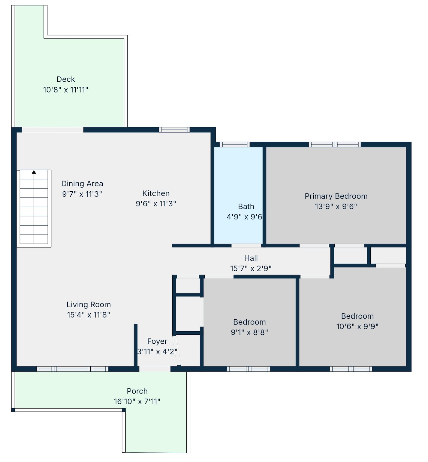 | Chambre à coucher | 8.9 x 9.3 P | Rez-de-chaussée | Plancher flottant |