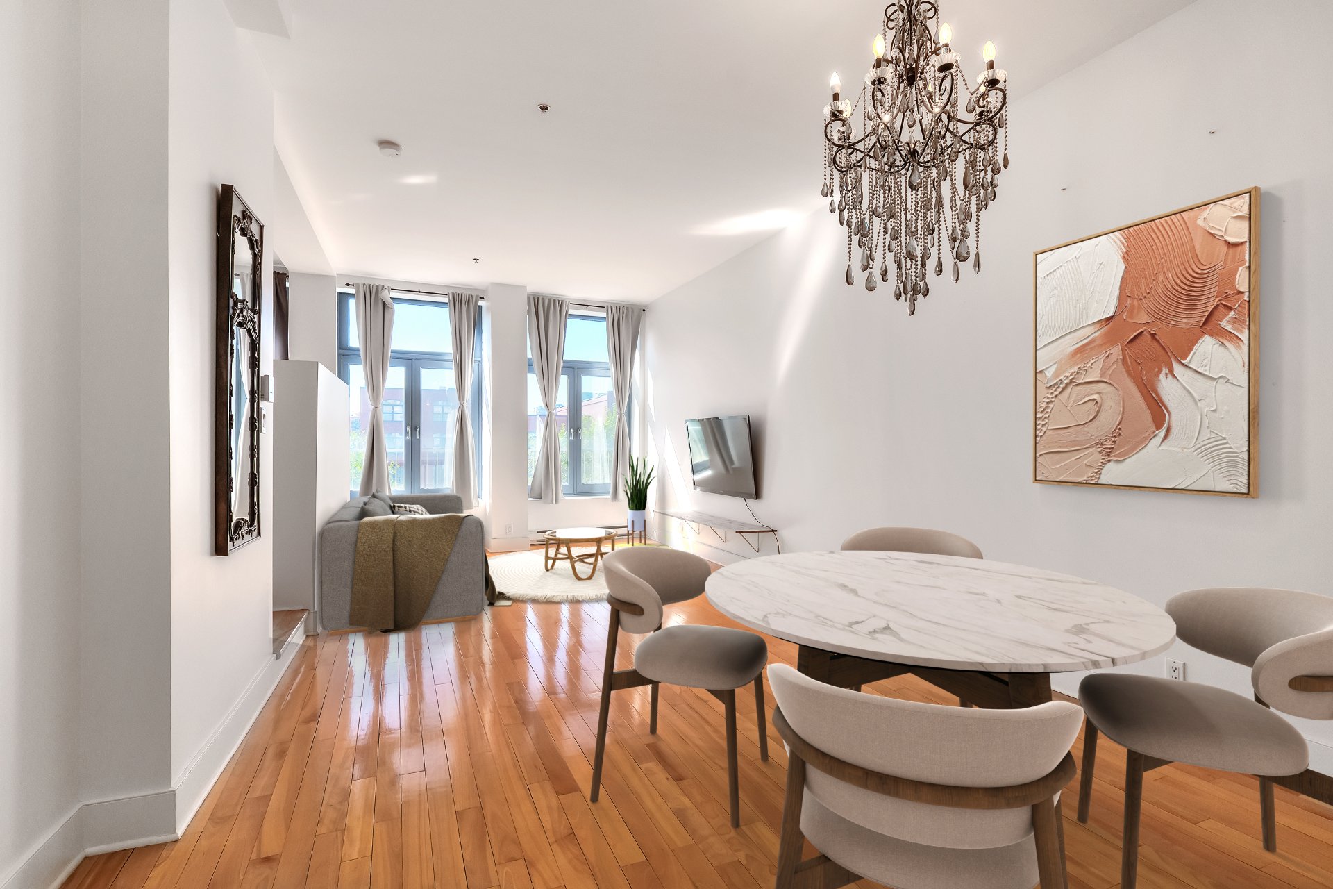 - Grandes fenêtres offrant une vue sur le Vieux-Montréal