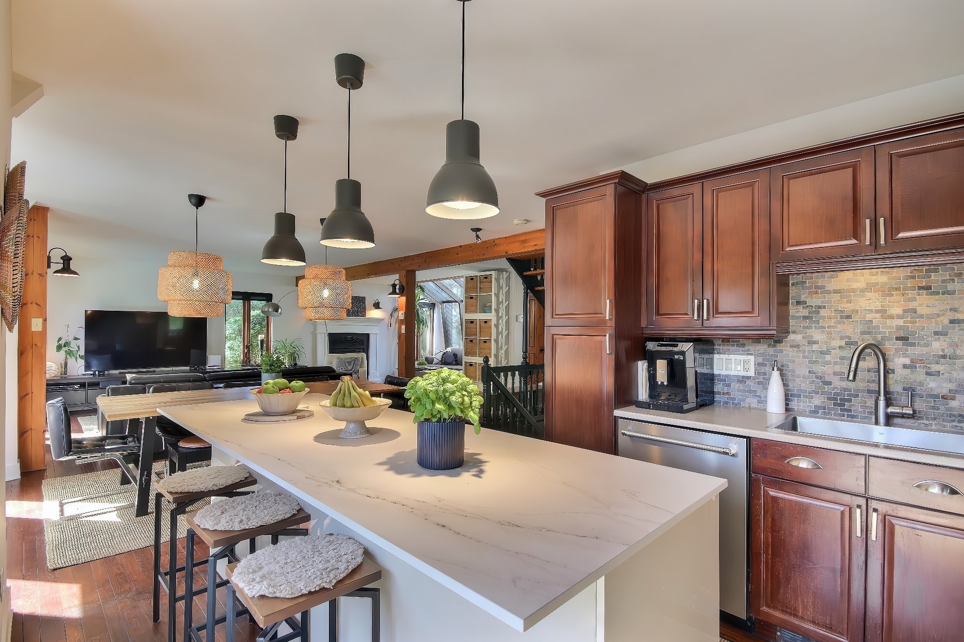 Dès l'entrée, la chaleur du vaste salon vous accueille. Le