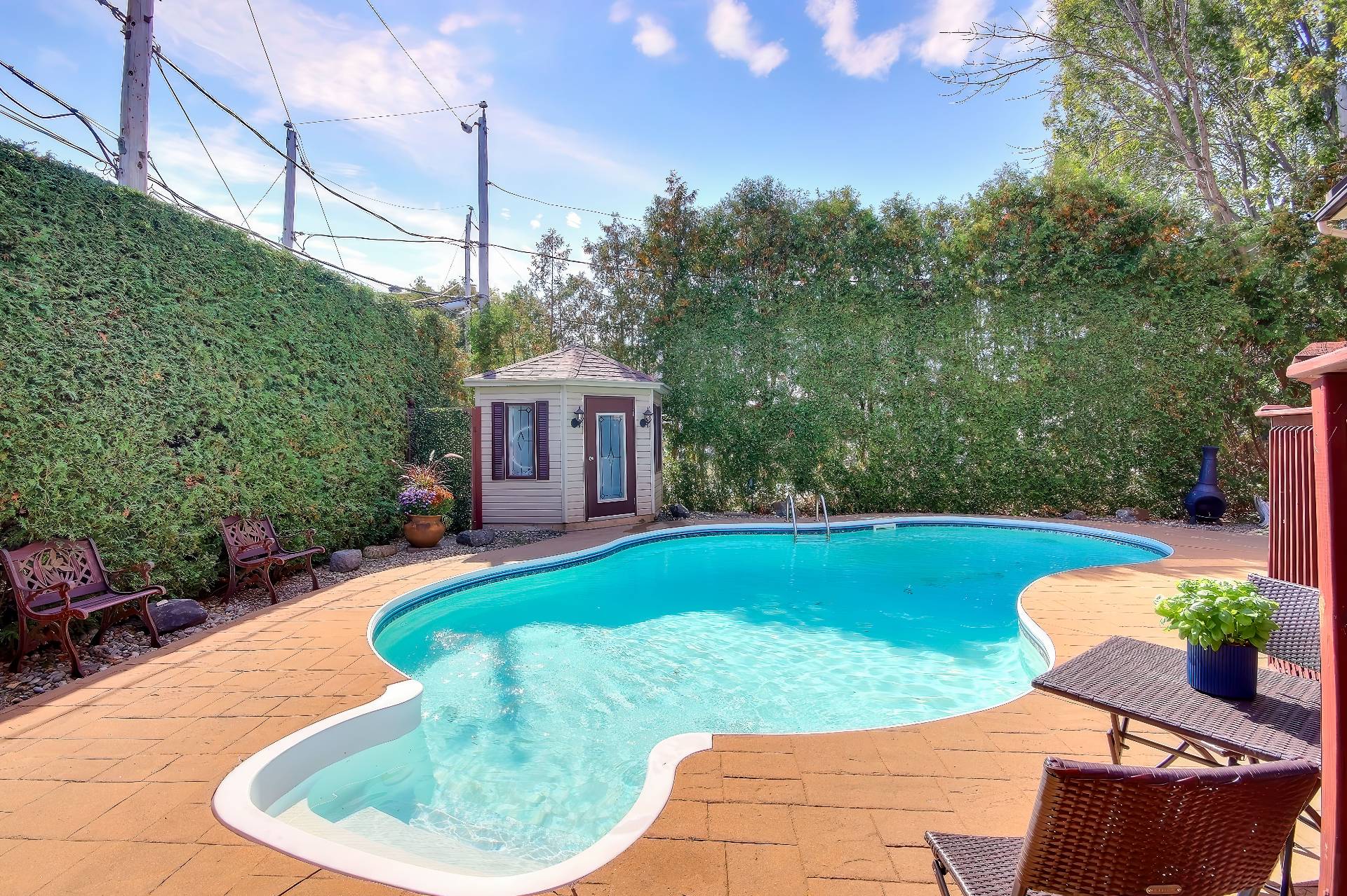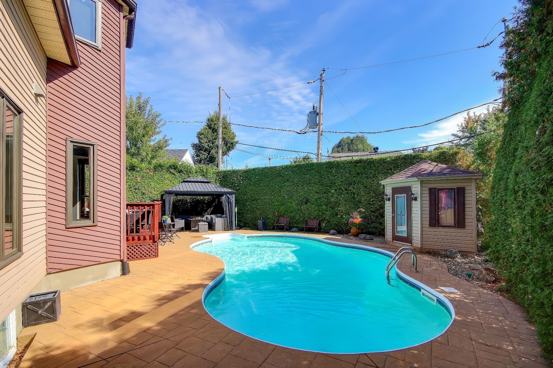 complétées par un élégant gazebo et un pratique cabanon.