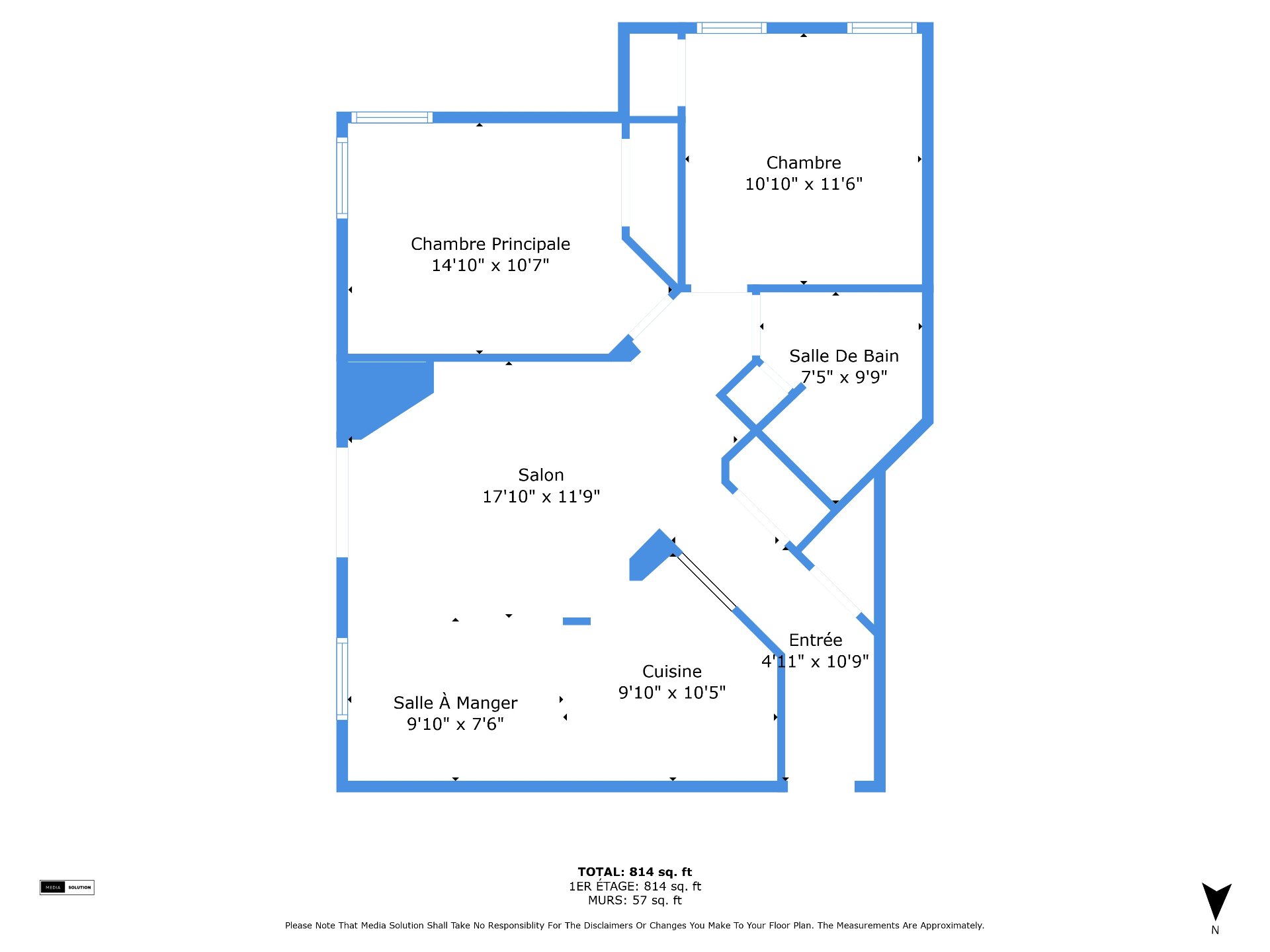 | Hall d'entrée | 4.11 x 10.9 P | Rez-de-chaussée | Plancher flottant |