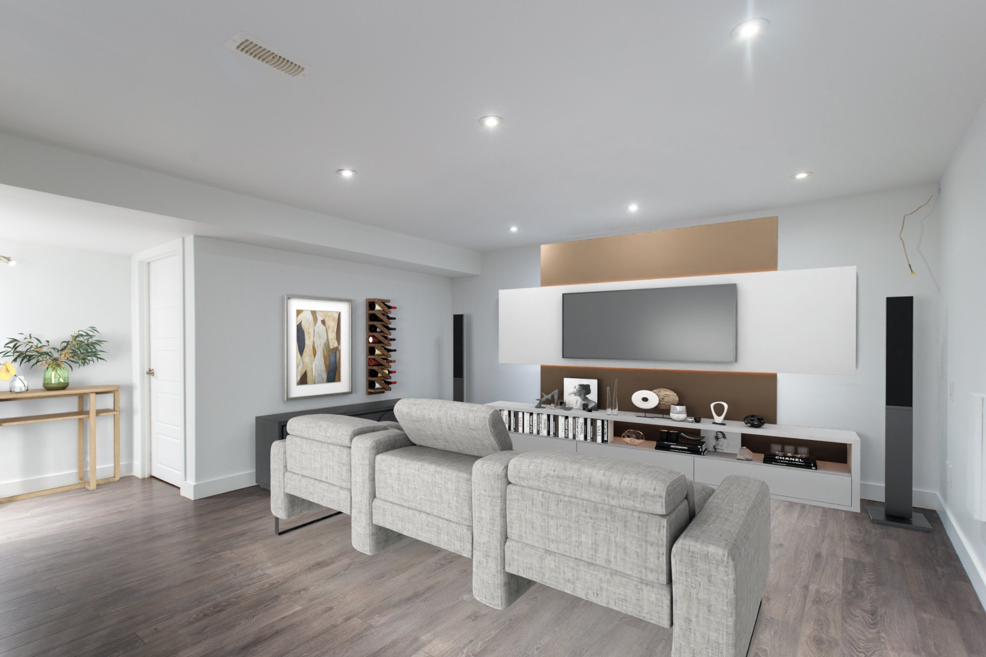 Sous-sol aménagé offrant une chambre supplémentaire et une