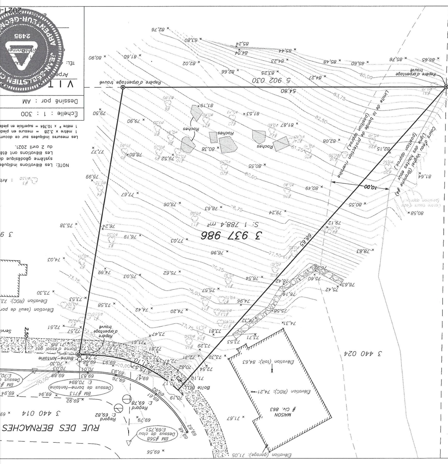 Surplombant les montagnes, ce terrain prestigieux est situé dans un environnement boisé et ensoleillé. Idéalement situé près d'un parc, de la gare, de la route 116 et de l'autoroute 20.