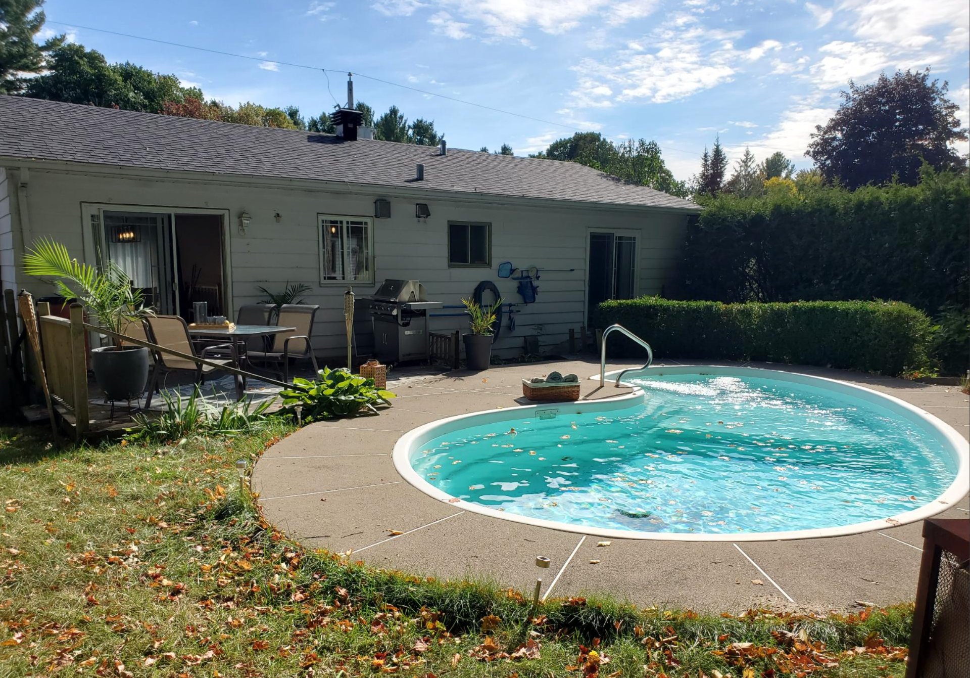 bordée de haies et agrémentée d'une piscine creusée au